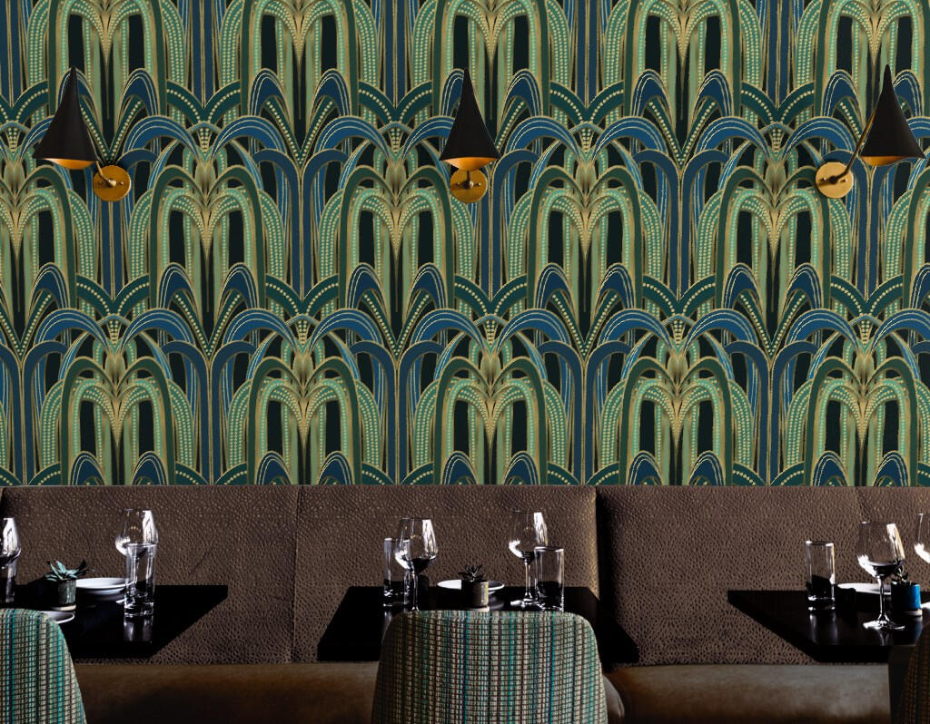 An Art Deco–styled space brings big energy with zero apologies. Think bold geometry, glamorous materials, and patterns that look like they showed up dressed to impress. This style loves drama—but the classy kind.These Art Deco designs lean into strong graphics: sunbursts, stepped arches, fan motifs, and sleek symmetry. Colors are rich and confident—deep emeralds, midnight blues, and other jewel tones—often punched up with metallic accents. The overall effect is beautifully eye-catching, with patterns that feel structured yet glamorous.Available on 30 types of fabric and 6 wallpaper bases, as well as a variety of ready-made home decor items.These designs are available for licensing - please inquire by clicking the licensing button below.